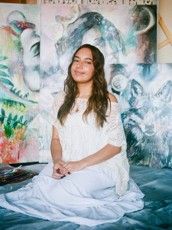 After working in youth mental health, Te Manaia made the decision in 2025 to step fully into her art practice. She is now working towards her first solo exhibition while studying part-time. Each piece she paints is a reflection of her journey grounded in faith, resilience, and a strong belief that her purpose is bigger than herself. She hopes her art will not only be seen, but felt , reminding others of who they are, and who they come from.